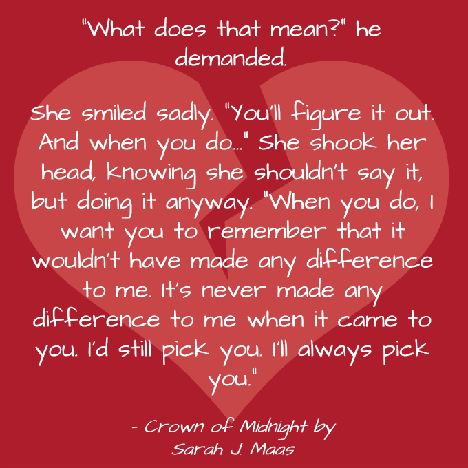 DeleteMy favorite of these quotes is the one from Throne of Glass. I nearly died laughing that entire scene :) I haven't quite finished Crown of Midnight, and I haven't read any of the others, though they're all great quotes. Thanks for sharing!